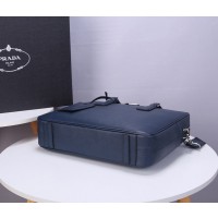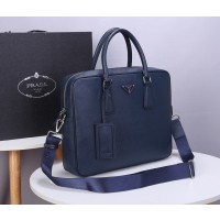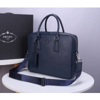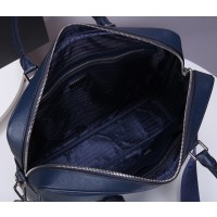 Prada Saffiano Leather Briefcase Dark Blue PR067